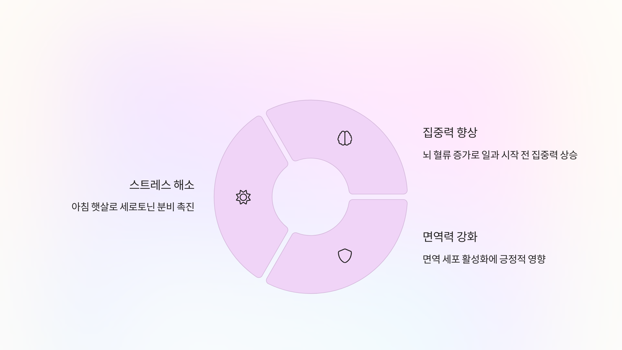 신체 활동으로 뇌 혈류가 증가해, 일과 시작 전 집중력이 올라갑니다.