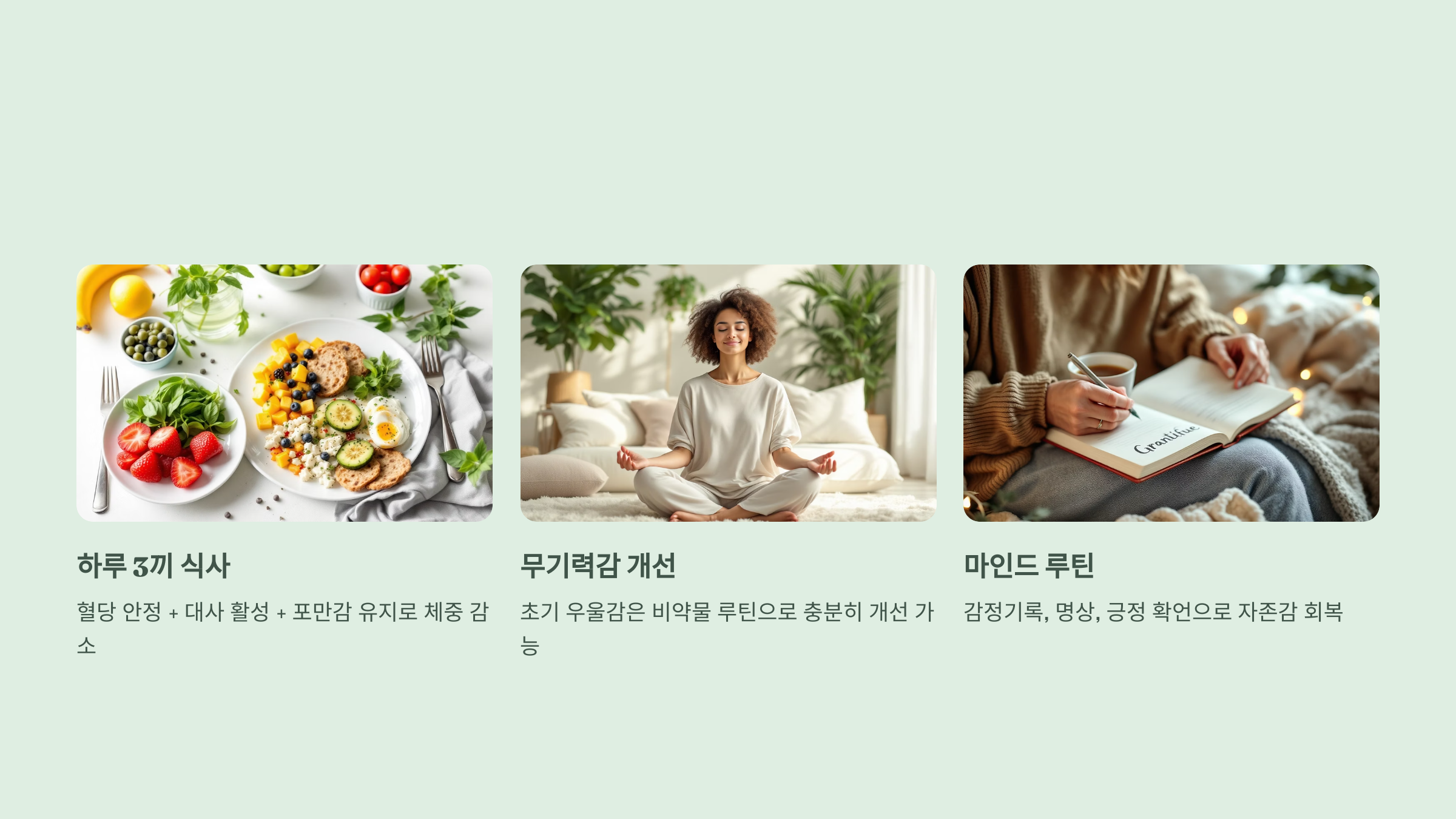 👉 이 루틴은 식욕 조절, 수면의 질, 자존감 회복에 직접적인 도움을 줍니다.